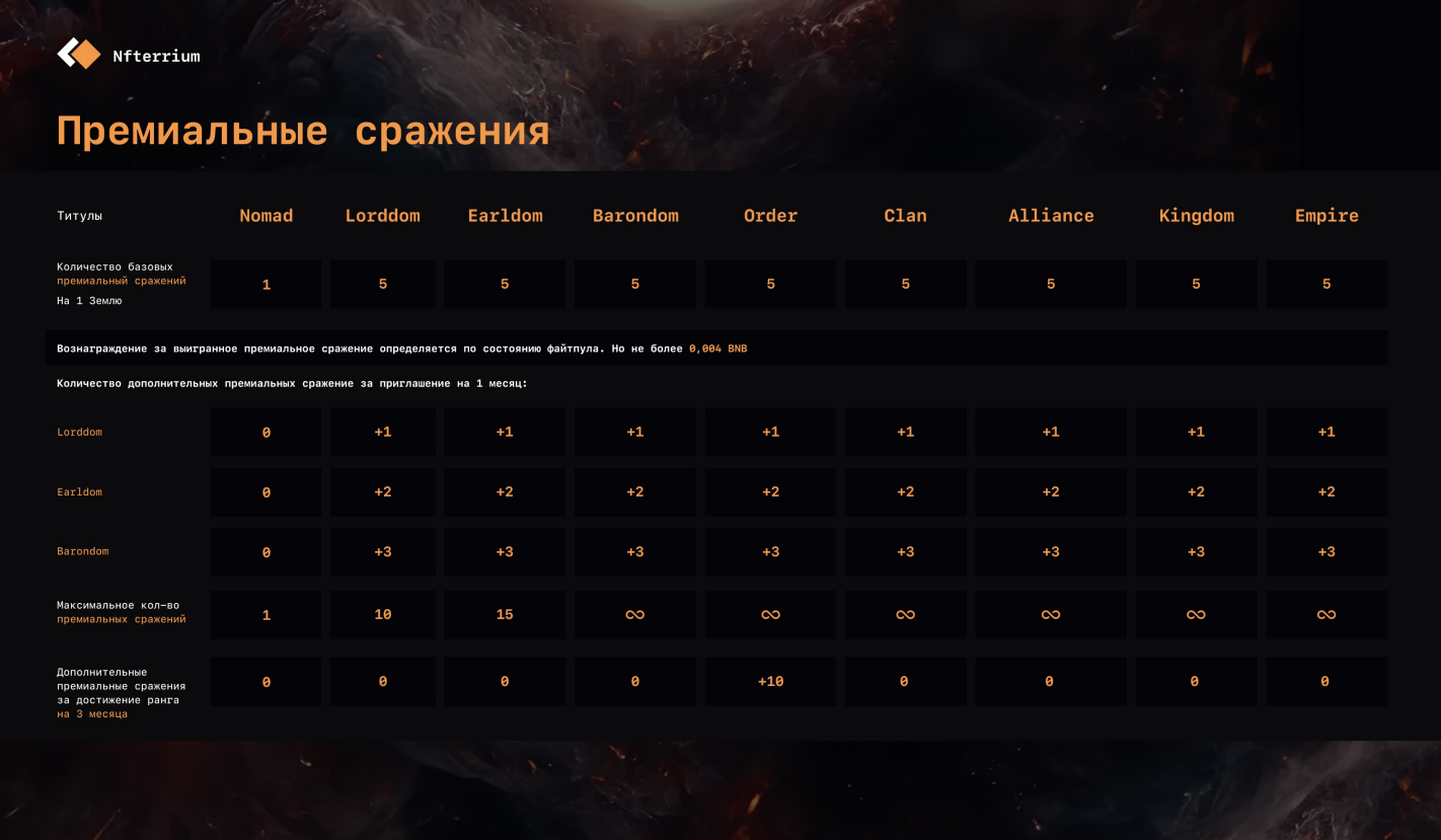Общее количество премиальных сражений, как и максимально доступное их количество зависит от Титула приглашенных рекрутов.